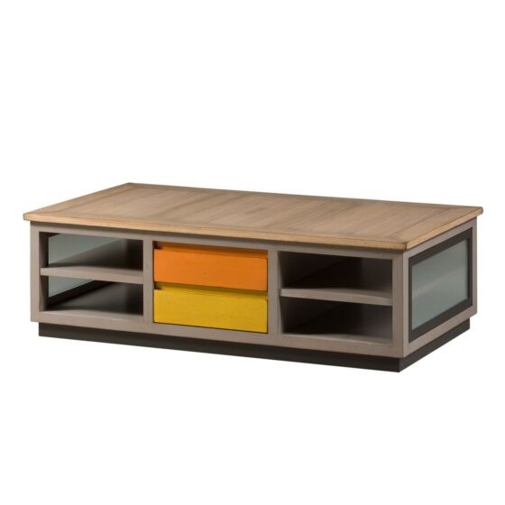 Add a touch of sophistication and color to your living room with the Symbiose coffee table. Traditionally handcrafted, this top-of-the-range oak table illustrates the mastery of the art of joinery. Two elegant side niches open up a space to enhance your decor and visually lighten this generous piece of furniture.