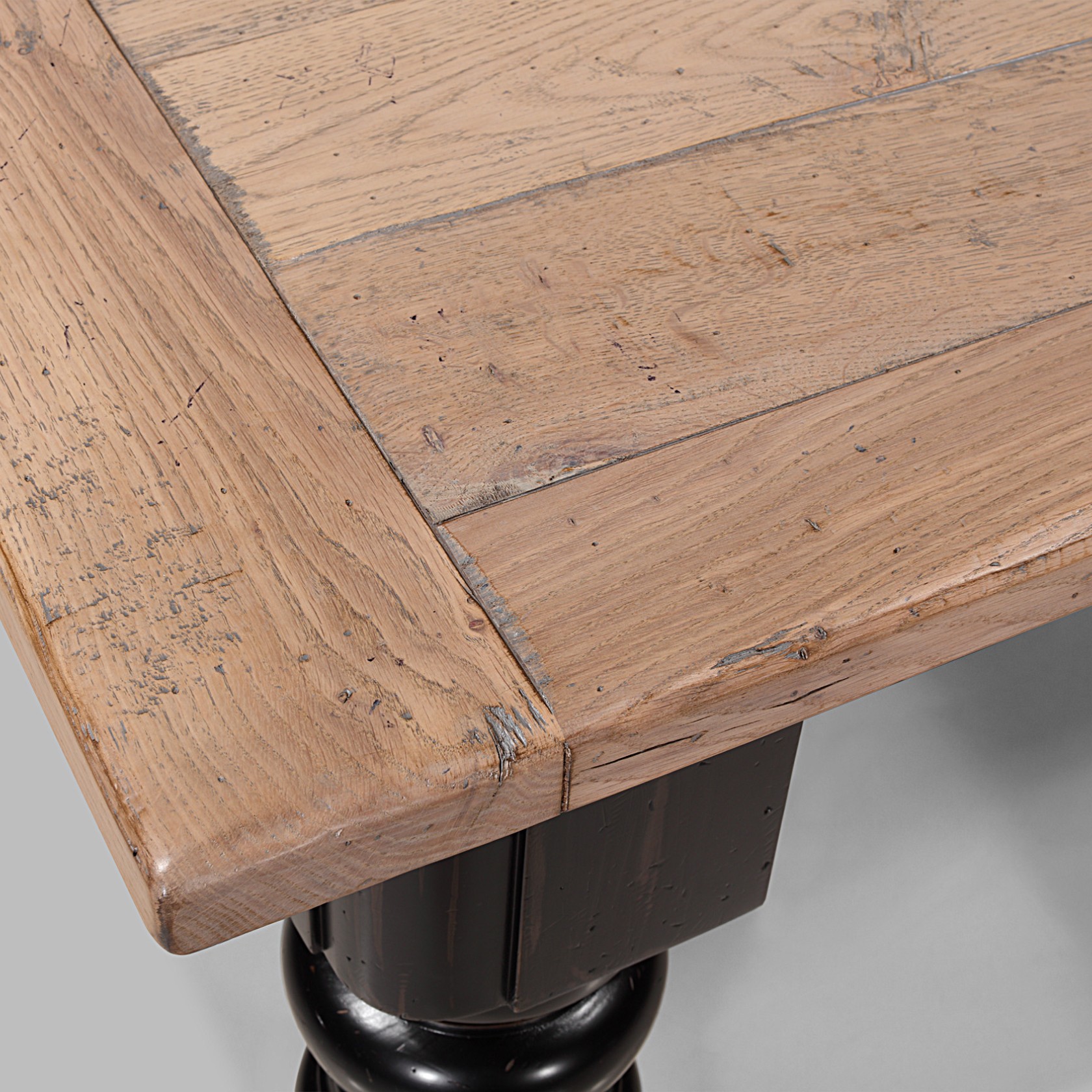 Evoking the charm of traditional farmhouses in the South of France, this table features oversized legs, making it not only a functional element but also a decorative piece in its own right. The choice of large cross-sections of wood gives this piece a robust, plush look, guaranteeing not only its aesthetic appeal, but also its solidity.