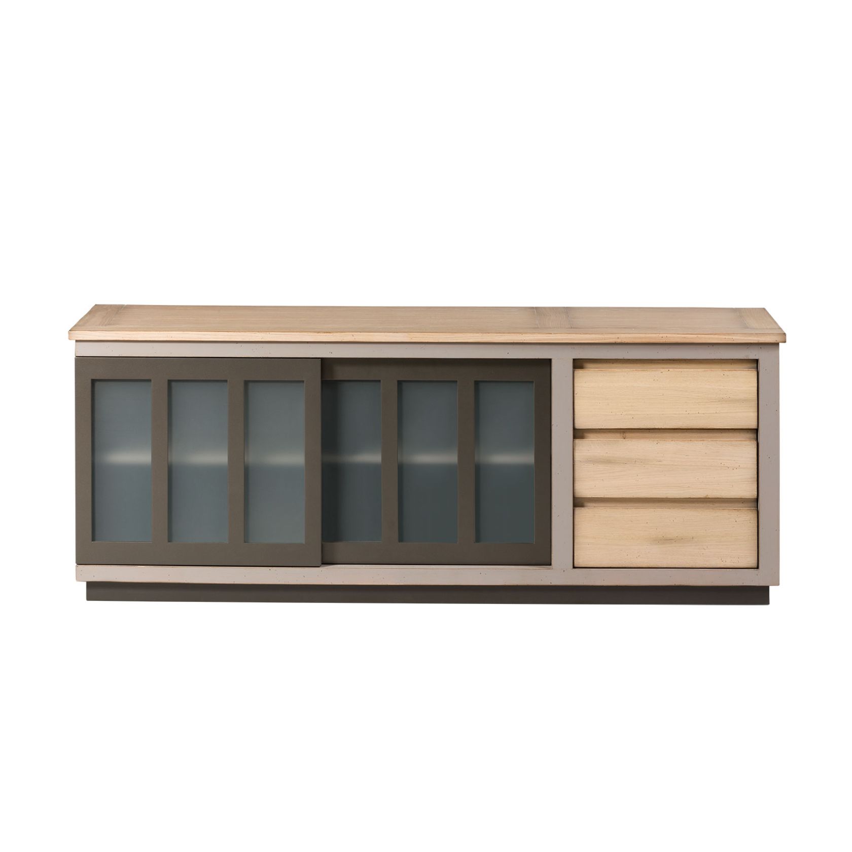 Enhance the elegance of your living room with the Symbiose TV stand: a striking example of traditional craftsmanship and modernity. This top-of-the-range, hand-crafted piece of furniture perfectly combines neo-industrial style and functionality. With its canopy-style sliding doors and three drawers, it offers generous storage space while remaining elegant and distinctive.